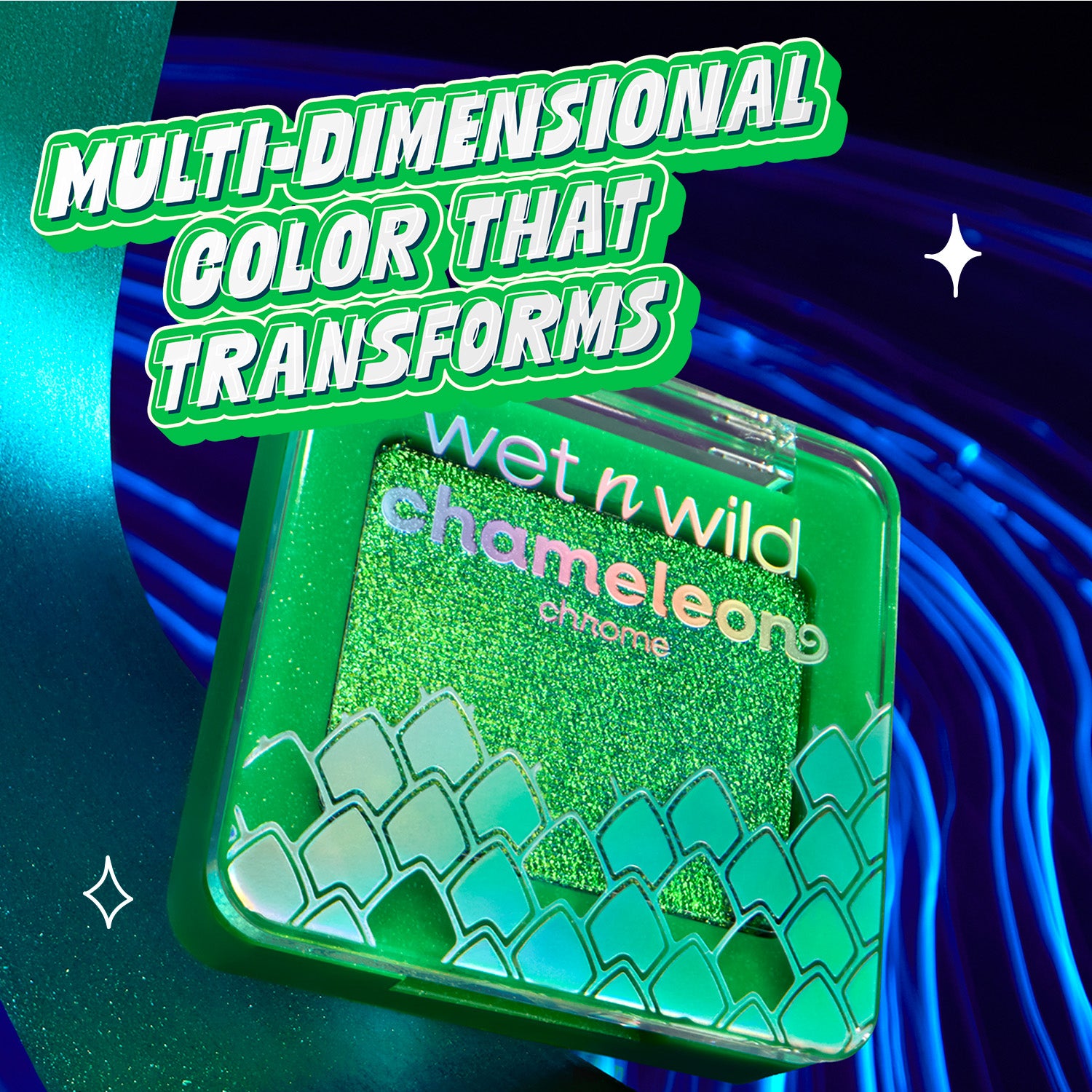 Color that evolves. Chameleon Chrome Eyeshadow delivers a high-impact, multi-chrome effect packed with vibrant, light-shifting pigments and ultra-reflective pearls. Our silky formula glides on effortlessly, creating a mesmerizing, multi-dimensional finish.