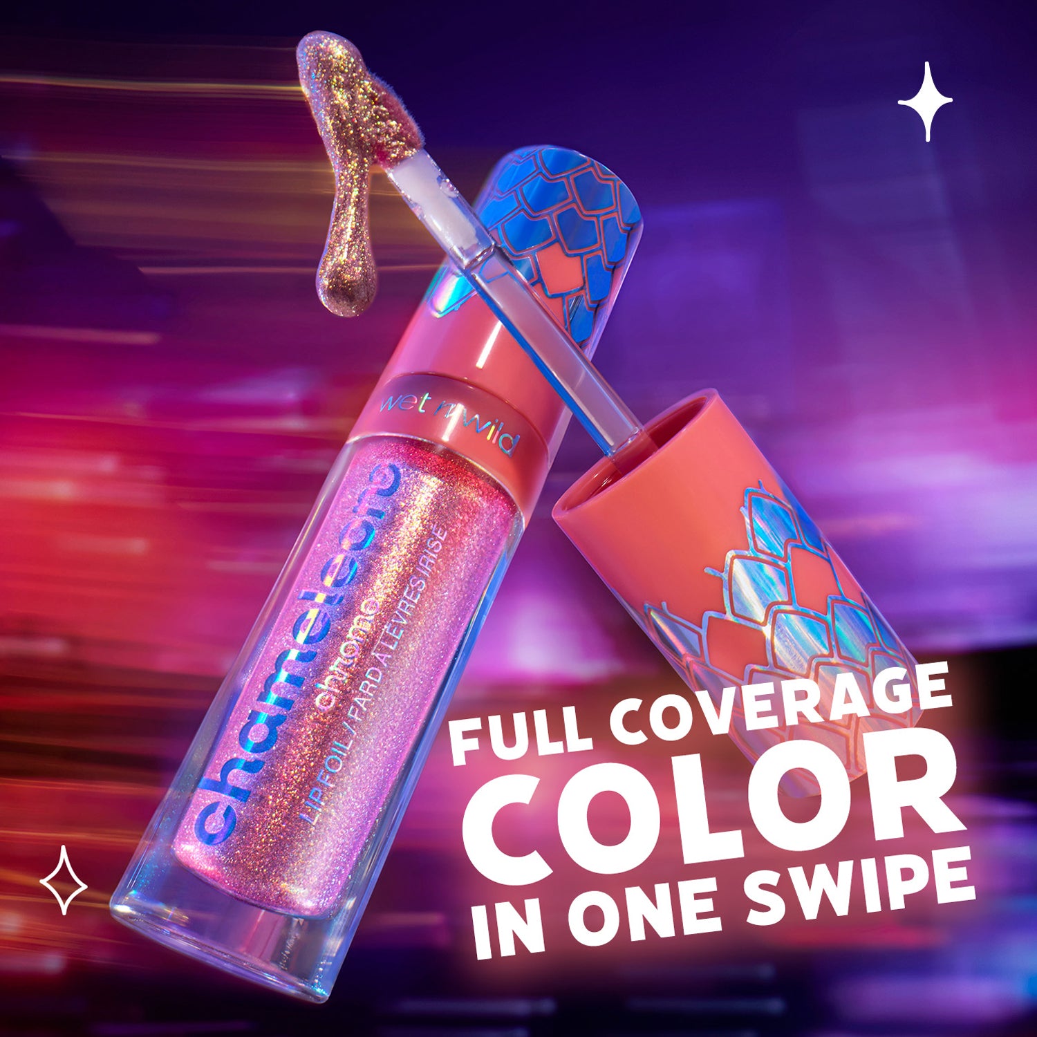 Own every version of yourself with Chameleon Chrome Lip Foil, a groundbreaking lip color that redefines what it means to shine! This isn’t just a lip color, it’s a statement as bold as you. With never-before-seen, light-reflecting pigments, each shade transforms with every shift in light, adapting and evolving to your surroundings. With a smooth, non-sticky formula in 2 mesmerizing shades, these lip foils provide full, multidimensional coverage that won’t budge.