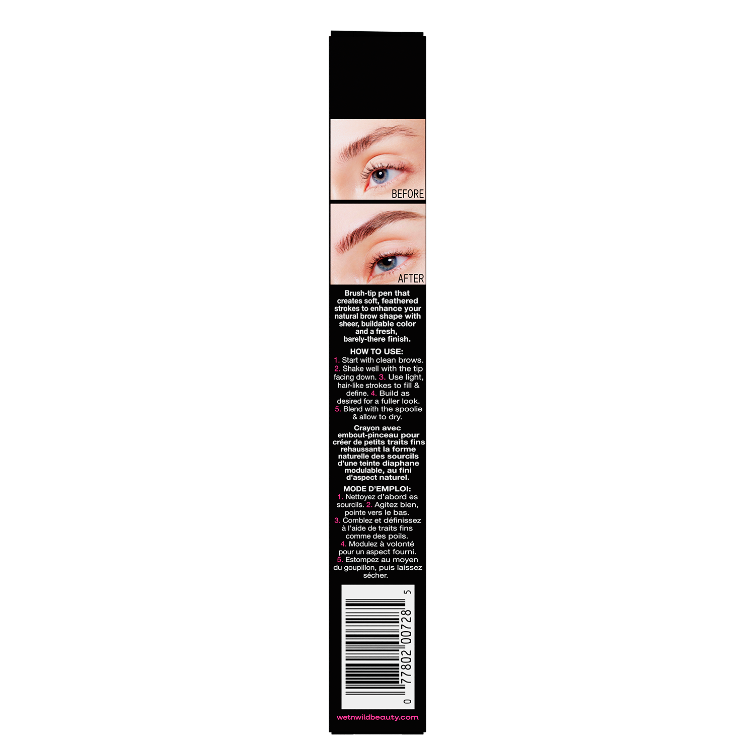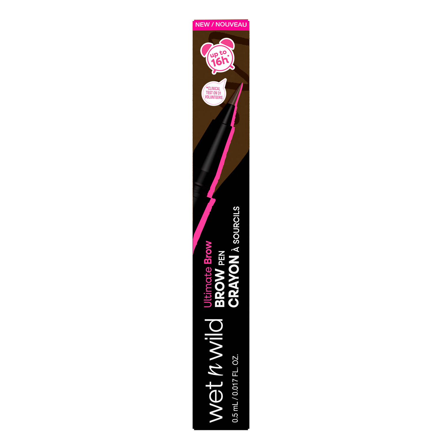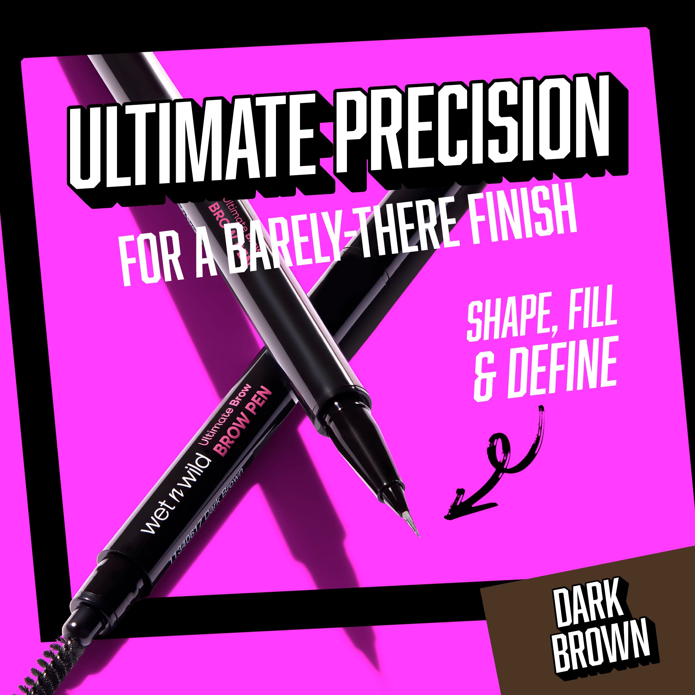 Line, shape, and define! The Ultimate Brow Pen features an ultra-fine brush tip that creates soft, feathered, hair-like strokes with a spoolie on the other end for effortless blending. The lightweight, buildable ink naturally enhances the brows with a fresh, barely-there finish that lasts up to 16 hours. Waterproof and smudge-proof, it keeps your brows in place all day.